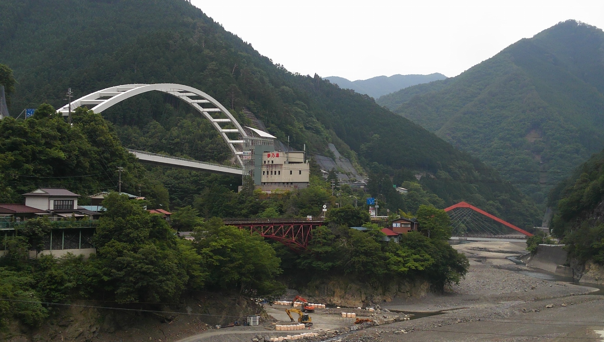 >マットさん 早々に見てきていただき、ありがとうございました! しかも橋が3つも見える素敵なアングル!! 水害の被害については聞いており、心配していましたが、復旧がすすんでいるとのことでほっとしました。 またいつか入浴しに行ってみたいです。