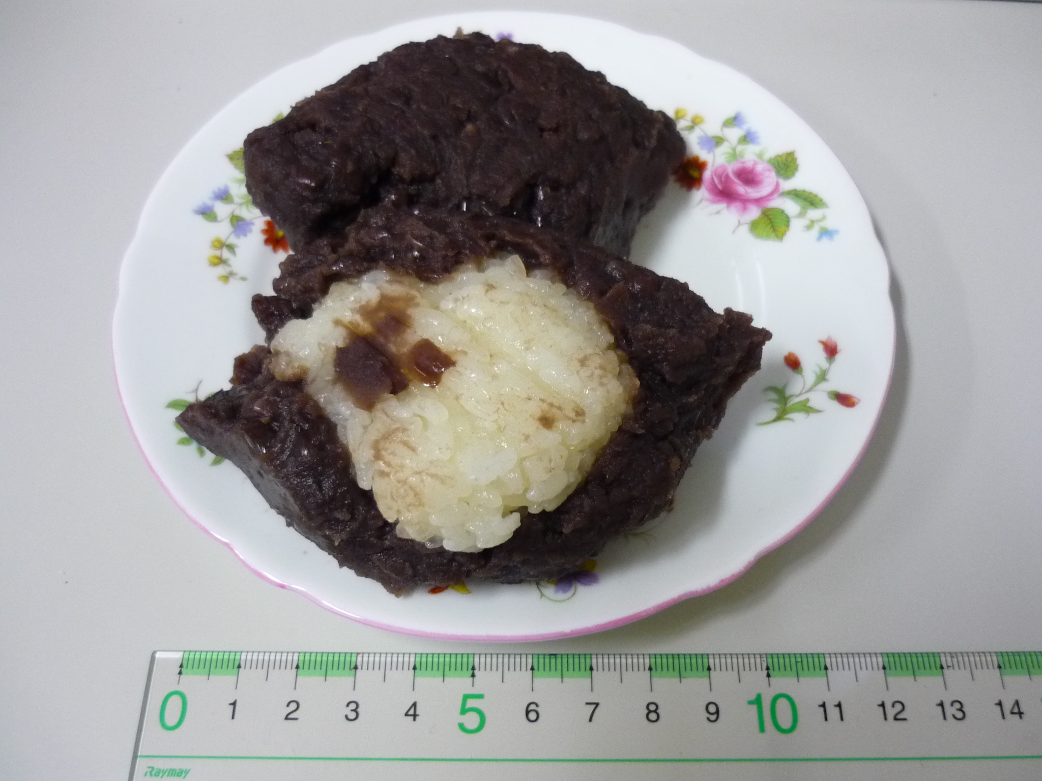 ・さいちのおはぎの裏の写真(裏まであんこで覆われていることが分かるようなもの)
