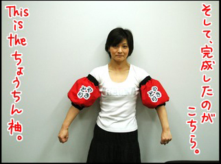 黒い布と赤い布を縫い合わせる。筒状にしてゴムを通す。腕に通して出来上がり。