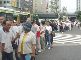 列の最後尾では、おばちゃんが警備の人に待ち時間を聞いていた。1時間半から2時間は見て欲しいとの答え。