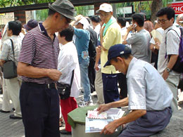 おじさんに声をかけてみると、ジャンボ宝くじの当選経験者で「御利益のおまじない」をやってくれているんだそうだ。この売場では有名らしく、買ったほとんどの人がおじさんに宝くじを渡していく。もう、こうなったら何でもかんでも信じたい。私もお願いした。