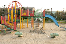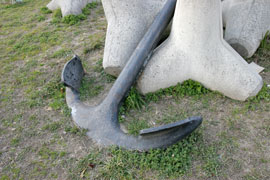 公園といえば、すべり台にブランコ、ジャングルジムの他に、動物などを形取った遊具があります。こちら、此花区の常吉公園には、海にちなんだ遊具が置いてありました。でも、遊具と呼べるのかどうか……。