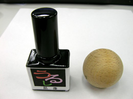 木の玉に塗り始める。………。お、おもしろい。光沢がみるみるついていく。