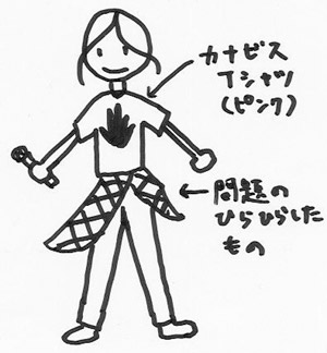 あと気になったのが、一番人気の青年、Kさんの衣装。麻の葉っぱのTシャツに、腰にヒラヒラした巻き物。これは、グランジファッション(バンド『ニルヴァーナ』に代表される90年代カルチャーの1ジャンル)っていうことで、いいのでしょうか……。