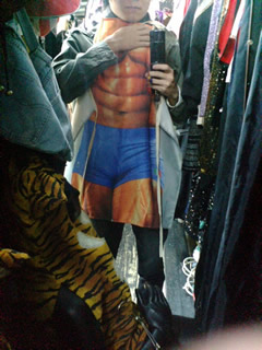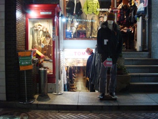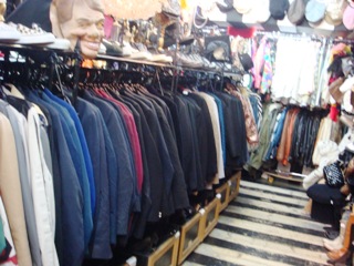階段→廊下→階段という感じで3階に上ったところにある奥まった部屋に店はあった。ガチャッと音をたててドアを開けると、服がびっしりと並んでいた。