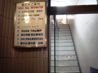 すいません、じゃあ店をかえさせて下さい。 元に戻ってampm、電力館と通り過ぎて、次の交差点までのあいだに ヌードトランプという店があります。 フリークスストアの隣と書いてあります。
