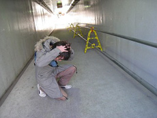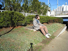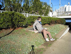 座って携帯を見ている写真を撮ろうとしたところ、足を滑らせた瞬間をセルフタイマーが激写
