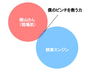 検索エンジンと横山さん、これほどお互いのいいところを殺しあう組み合わせもそうそうないのではないだろうか。二人の兄貴の協力関係を図に表すとこうだ。