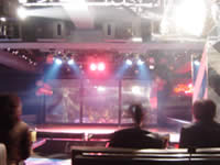 15分ほどすると、席に着いていたニューハーフの人たちがショータイムの準備のためステージ奥に消えて行き、店内の照明が落とされ、ショーが始まる。