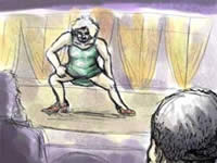 「青春時代」のイントロが流れると太めで凄いメイクをしたオカマの「さんぞう」さんが颯爽と登場。色々な人の物真似で青春時代を歌いはじめるが、物真似をする前に「吉幾三!」とか言ってくれないので、微妙に誰の物真似か分らない。