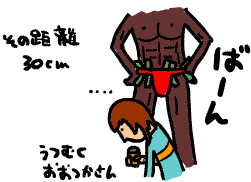 「うわあああ、だ、ダンサー全員が、客席をうろうろうろうろしてる………パンツ1枚で………」