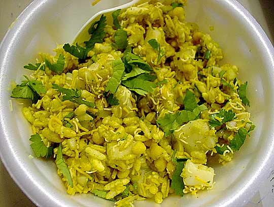 「コリアンダーが入ってて、甘くて酸っぱくて、さっき食べたパプリ・チャットに味が似てるけど……なんか、揚げた米とか麺とか入ってて、サクサクするわね」