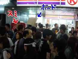 次々と降りて来る学生たち。1階のコンビニ前に結構な人数がたまっていく。