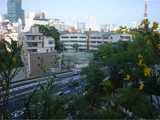 最後のスポットは、 この写真の中央に見える 六本木の小学校です。