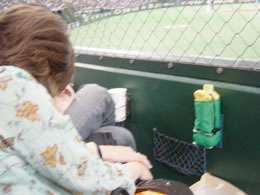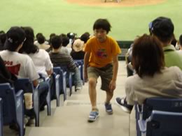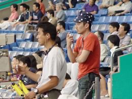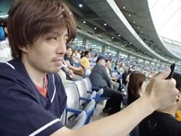 自宅で野球中継を見ている林さんからバックネット裏席が写るタイミングの指示が出る。