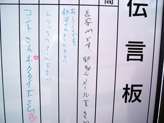 会場外の伝言板。