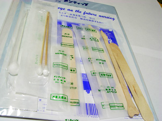 のどの奥にルゴールを塗るための綿棒もあった。みたことないような綿棒もたくさん。木のへらは舌の苔を取るものらしい。アイスのスプーンではない。