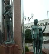 駅構内の随所に由緒ある石像がたくさん建てられていた。 ホントは全て何か歴史的意義のある建造物なのだろうが、 おかげですべてギョウザがらみのものに見えてくる。