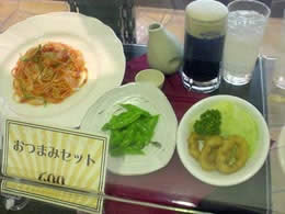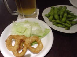 メニュー:酒1品、枝豆、イカリング(日替わり)