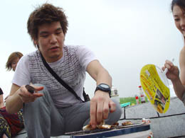 金髪の若者が、手慣れた手付きで七輪を扱いはじめた。火の調子はぐんぐんよくなる。彼は「炭火焼きの店でバイトしてるんですー」と言った。