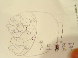 メニューに見入りながらイマジネーションを高めていく古賀さん。気にかかったメニューをリストアップし、完成予想図を描き始めた。勝手丼予想図だ。