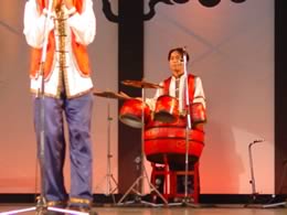 ところでベトナムの民族音楽の演奏に使われていた、ギター。ベース。ドラム。 って日本ではみかけない姿で、撮らずにはおられませんでした。ちょっとすごい3ピースバンド。