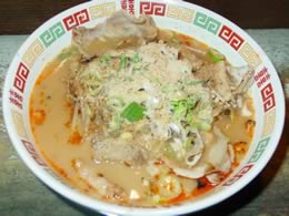 バンコクラーメン。 タイの首都バンコクの名を冠したメニュー。普通のとんこつラーメンに、ピリ辛味の野菜炒めをトッピング。