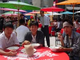 右端「自称マイケル」。3人はそれぞれベトナムの「フォー」を食べていた。見知らぬ人に貰ったのはニューカレドニア屋台の「テリーヌ・ドゥ フォワドゥ・ヴォライユ。鶏レバーのテリーヌ バゲット付き800円。