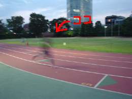 | 速い!速いぞ! さっき自分の走った姿のビデオを見ていたこともあり、そのフォームの美しさや動作の速さが私のと比べものにならないのがよく分かる。すごい! |