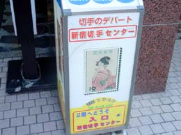 新宿切手センター。大江戸線新宿駅構内の看板で初めてその存在を知る。地図のとおりに来たのに、2回も素通り。雑居ビルというより古めのマンションの一室にある。