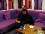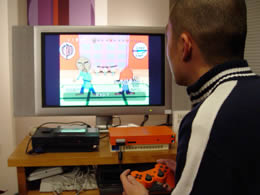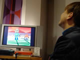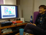 松浦さんにパラッパラッパーをやってもらう事に。 「久しぶりだからなあ」 と頭をかきながらも、快くコントローラーを握ってくれた。