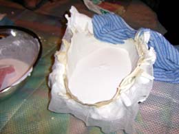 ぶよぶよの型は多くの水分を含んでいるが、時間がたつと乾いてちぢんでしまう。急いで作業を続けよう。