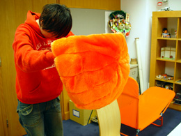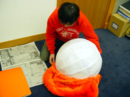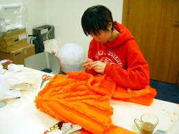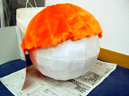 さて、これから目鼻を入れます。人形は顔が命。ここでウェブマスターに登場してもらって、ちゃちゃっと顔を付けてもらっちゃいましょう。 マスタ〜出番ですよ〜。