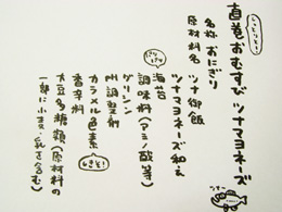 最後に僕が書いたおいしそうな文字をご覧ください。近所のコンビニで買ってきたおにぎりのラベルを清書してみた。おいしそうに見えるだろうか。ツナマヨネーズのおいしさを考えながら書いてみたのだが。