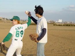 中々曲がらない僕のカーブ。 高野君が僕の腕を取って更に突っ込んだ指導をしてくれる。
