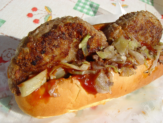 ついに到着。これはうまい。うまいぞ。ハンバーグも肉々しい香りがするし、パンも固すぎず柔らかすぎず。ハンバーグ以外の具も地味にうまい。たしかにこれはうまい。東京からきた甲斐があった。誕生日おめでとう。僕。