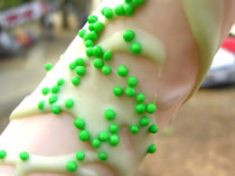 「これ、お祭りのなか歩いて持ってると楽しいけど、お祭りからはずれた場所で食べてると、ものすごくバカっぽいばあ」
