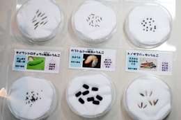 いろいろなむしのうんこが展示してあるのだが、むしの種類によってほんとうに形が違う。幼虫と成虫でも違うのだ。オンリーワンである。