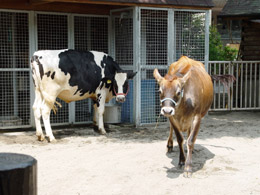 まずはウシ。 ホルスタインとジャージーの2頭が水を飲んでいる。