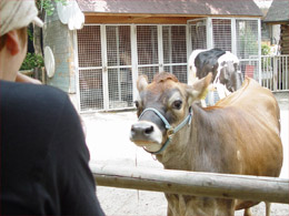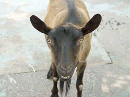 ウシはちょっと恐いな。でかいし。 ヤギなら大丈夫だろう。
