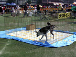 あと、会場内何箇所かに設営されていた「犬のトイレ」。大きな柵で囲んであるだけで、紙が敷いてある。関係者に「電信柱的なものがなくてもいいんでしょうか?」と聞いたところ、「単にマナー上、"ここでしてください!”ということですね」とのことだった。
