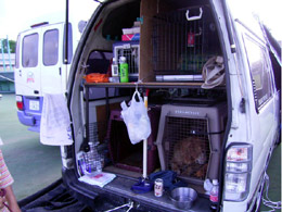 写真のバンには3匹乗っけてきたそうだが、一緒に仲間を3人乗っけて、途中は車中で寝ながら福岡から丸2日かけて来たそうである。
