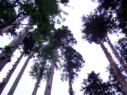 強まってきた雨を避けながら見上げた。平坦な住宅地にあっては高すぎる樹木が、なんだかこの世のものではないような気がしてきた。