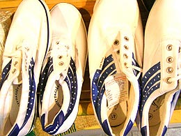 サンダルも運動靴もキュート。でもサイズ小さいですね〜。私ははけません。