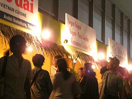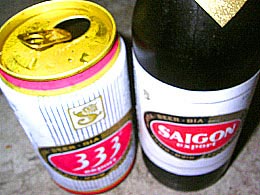 あとは、フォーやらエビせんやら春巻きやら……。さわやかにハーブのきいた食べ物たちを、ばりばり摂取。もちろんビールはベトナムのビール「333」!