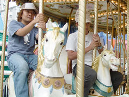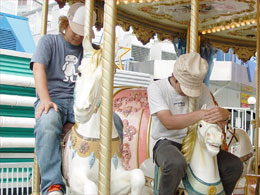 住「今の、ほとんど右回転でしたね……スピードも速いし」 林「……、ちょっとしたむち打ちっぽくなっちゃいました」 住「もう1回メリーゴーランドで、左に回っておきましょう」 林「……ええ」