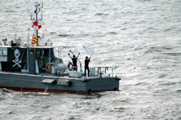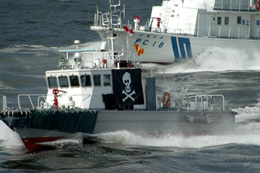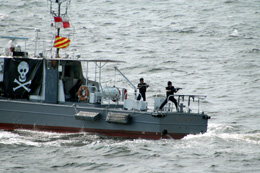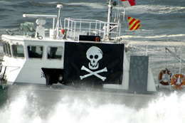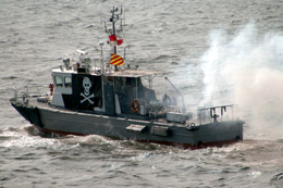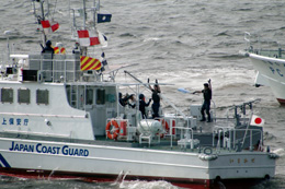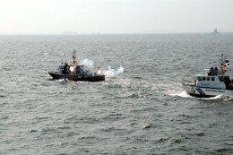 ドクロの旗が出てくる密輸容疑船捕捉訓練は連続写真でお伝えします。