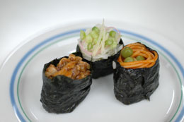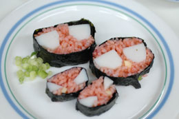 そうめん軍艦は麺つゆにつけてお召し上がり下さい。