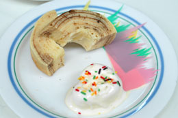 寿司のサイドメニューとして浮かないよう、甘みを抑えて作ってある。アイスと一緒にお召し上がり下さい。