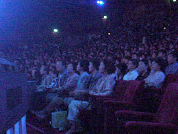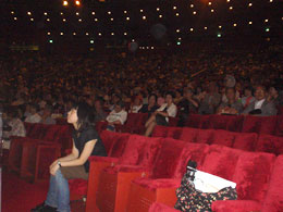 この度、報道として入場させてもらった関係で、なんと最前列に陣取ることができた。抽せん会中は報道席もマスコミ各社の皆さんでいっぱいだったのだが、1等の当選番号が決定すると次々と足早に帰っていってしまい、隣の席で一般のお客さんと談笑していたNHKの方も、ショウが始まる直前に、なぜかそのおばさんに黒飴をもらって去っていった。